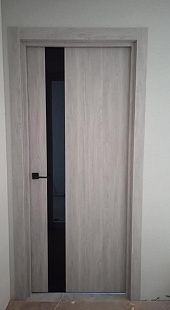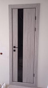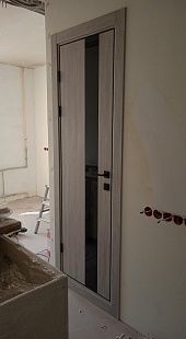 Дверь ПО Indigo 2 Дуб оксфорд стекло зеркало графит из Экошпона COVERFLEX (Двери Нева) в с установкой и доставкой